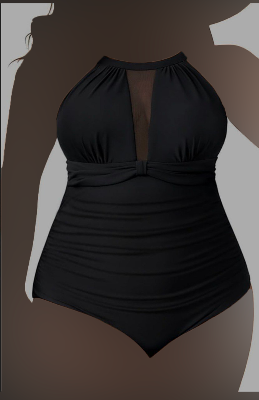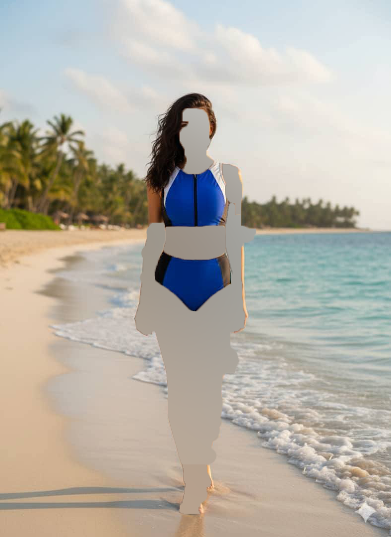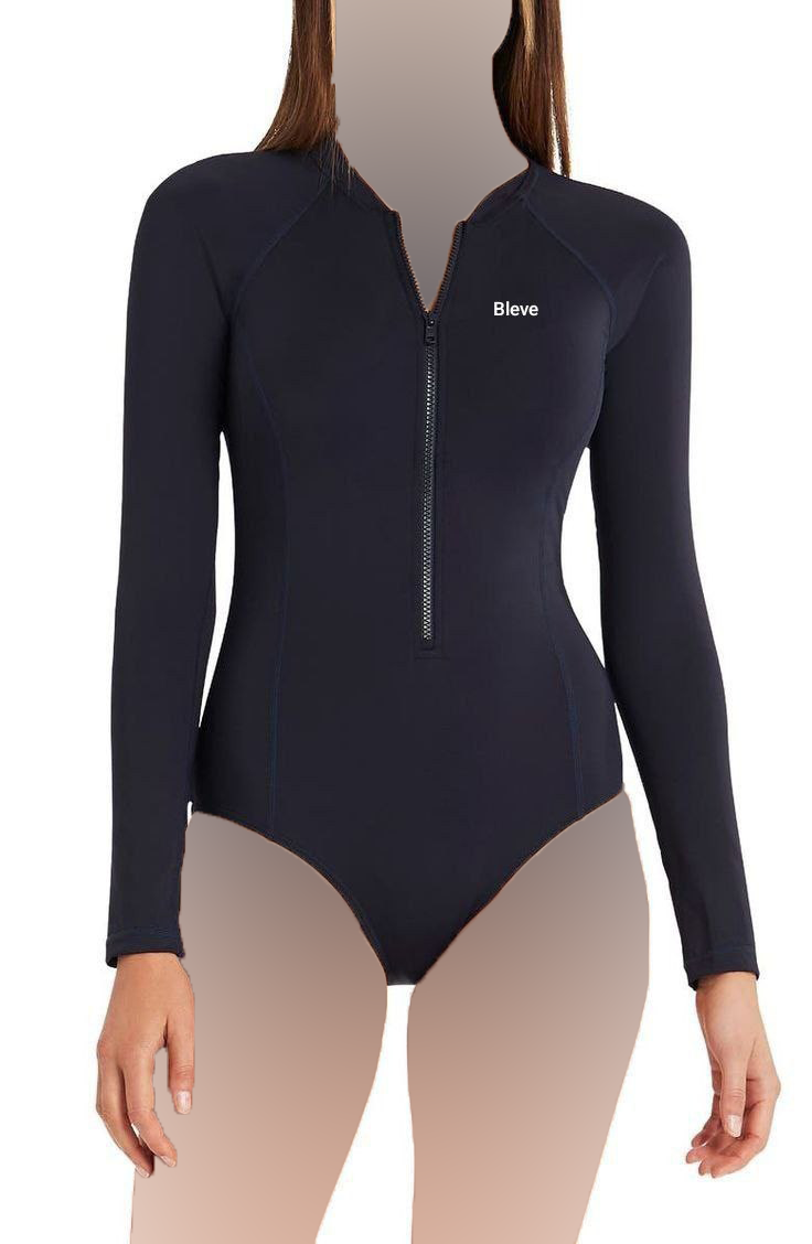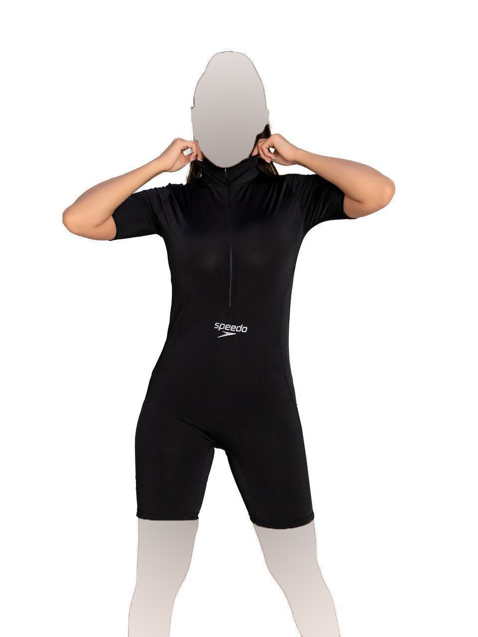 مایو شنا زنانه نیمه پوشیده آستین دار پادار مشکی